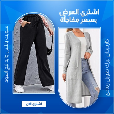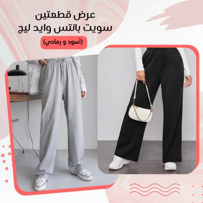 عرض قطعتين سويت بانتس وايد ليج ( أسود و رمادي )
